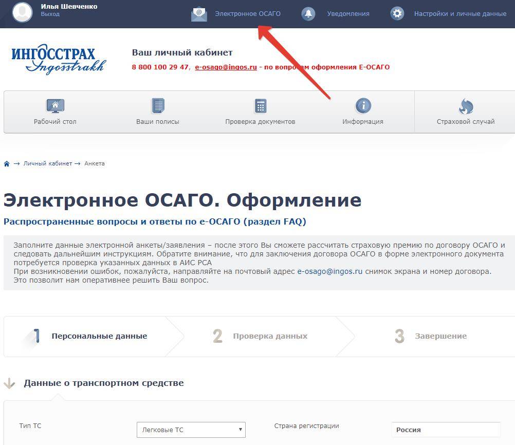 После того, как был создан личный кабинет, необходимо заполнить заявление на приобретение страхового полиса онлайн. Порядок действий будет следующим: