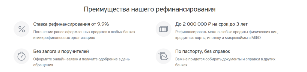 - одновременное предоставление всех указанных видов помощи либо рефинансирование в пределах банка Тинькофф (берётся новый кредит с целью погашения старого, но на более выгодных условиях).
