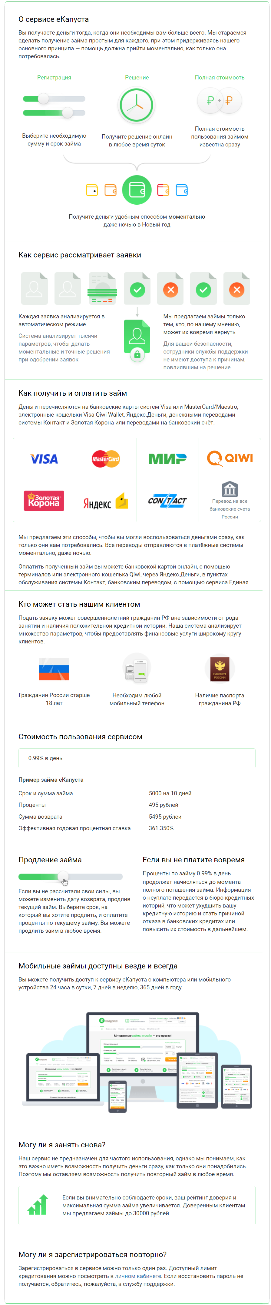 «еКапуста» – Вопросы и Ответы о Взятии Займа и Оплаты Онлайн