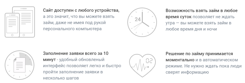 - Займы доступны круглосуточно, вне зависимости от дня недели и времени суток.