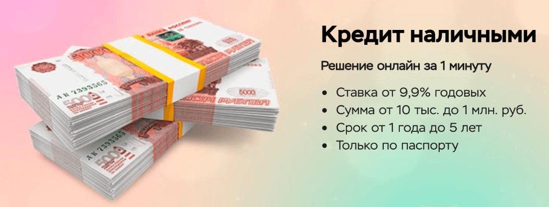- Сумма кредита: от 10 000 рублей до 1 000 000 рублей