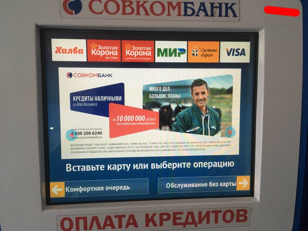 При помощи стационарных устройств Совкомбанка также можно совершить перевод. Для этого нужно: