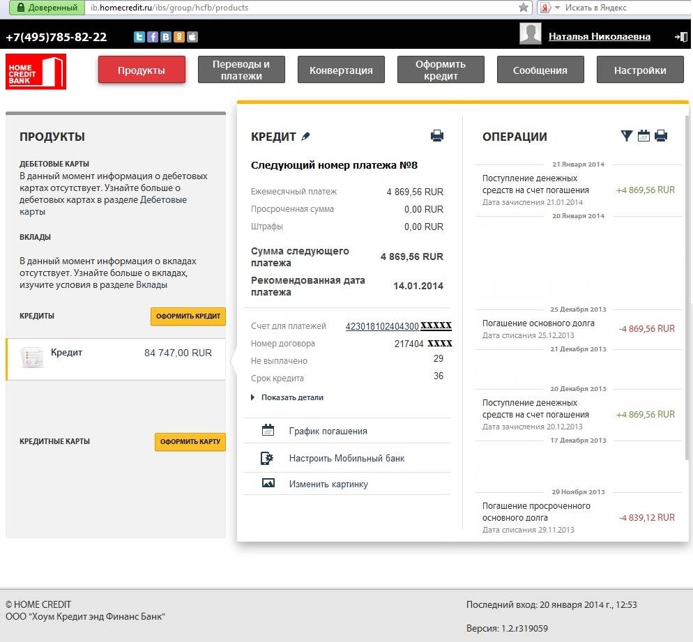 Порядок оплаты кредита в личном кабинете Хоум Кредит