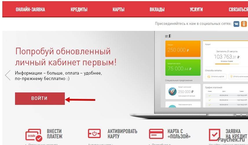 1. На главной странице сайта выбрать графу «Оплатить кредит онлайн».