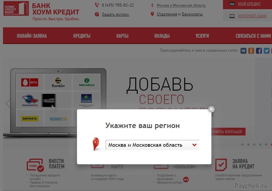 Погашение кредита в Хоум Кредит Банке картой через интернет