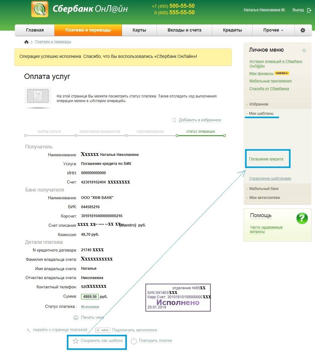 Если она составляет более 3 тысяч рублей, то операцию нужно подтверждать только при помощи смс. В случае верного введения всех данных появится сообщение об исполнении операции. Здесь же можно подключить автоплатеж и сохранить платеж в шаблонах.