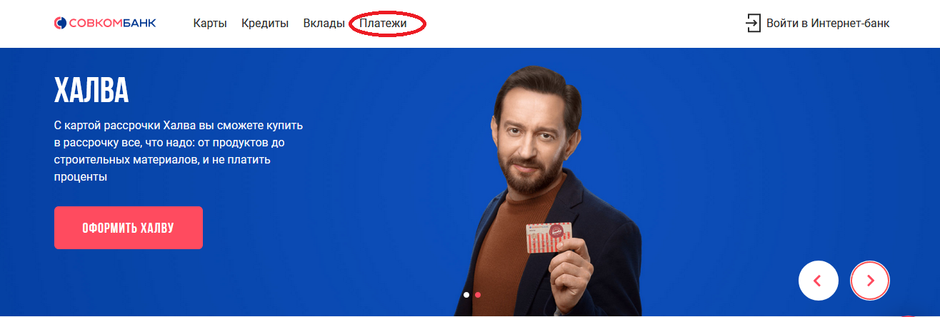 - Онлайн-платеж на карту Совкомбанка