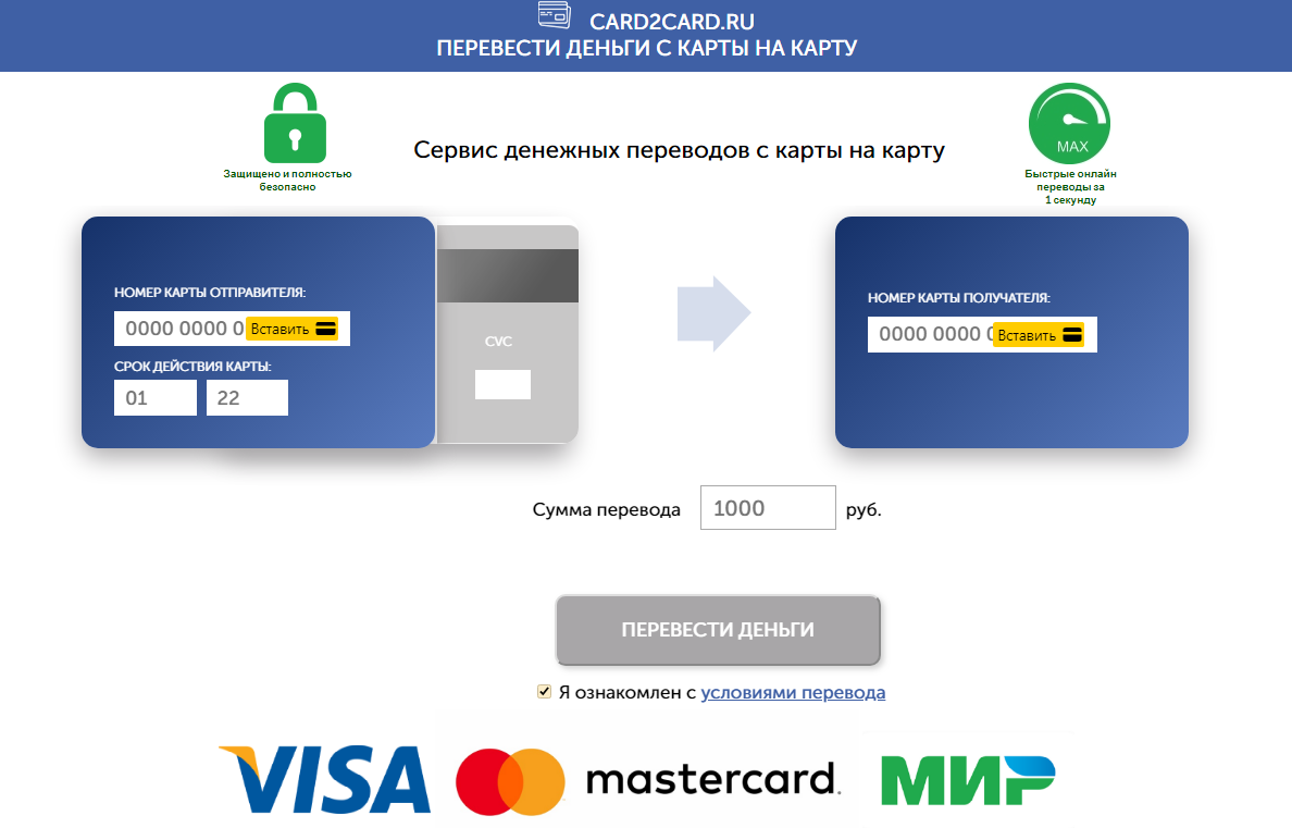 Процедура перевода предельно проста и заключается в указании реквизитов для карт отправителя и получателя. Далее необходимо следовать инструкциям программы.