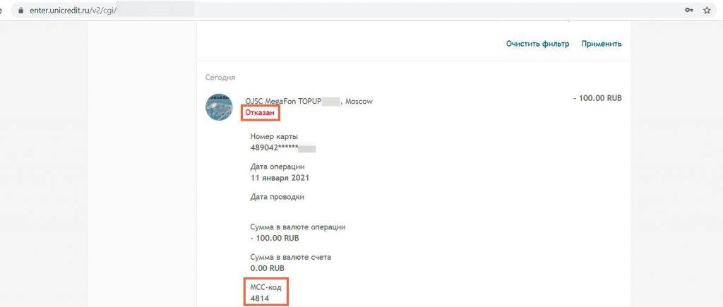 В интернет-банке и мобильном приложении «ЮниКредит Банка» виден МСС-код операции, даже той, по которой была отмена, т.е. «АвтоКарта» является бесплатным флагомером: