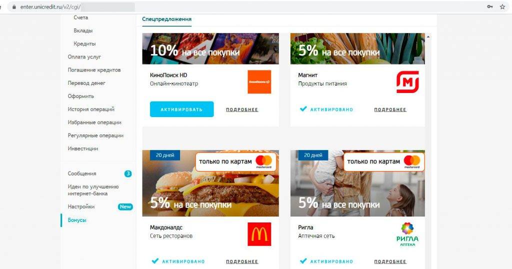 Однако по этой карточке бывают еще индивидуальные акции, например, мне «Юник» предложил 10% кэшбэка на все до конца января: