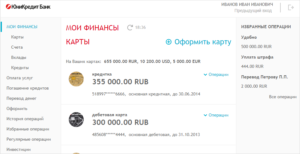 Если вы хотите пополнить счет ЮниКредит банка через интернет, сделать это можно в своем личном кабинете: