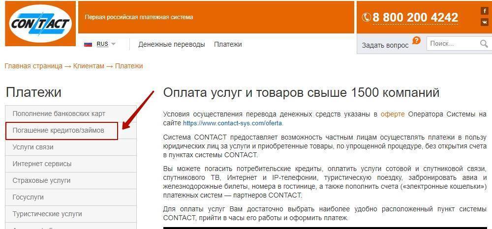 Оплату задолженности можно совершить с помощью платежной системы «Контакт», пункты которой находятся в офисах крупных банках страны. Перечень пунктов находится на сайте системы.