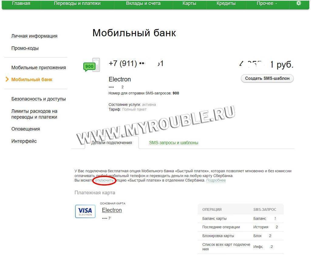 Как отключить Мобильный банк через интернет