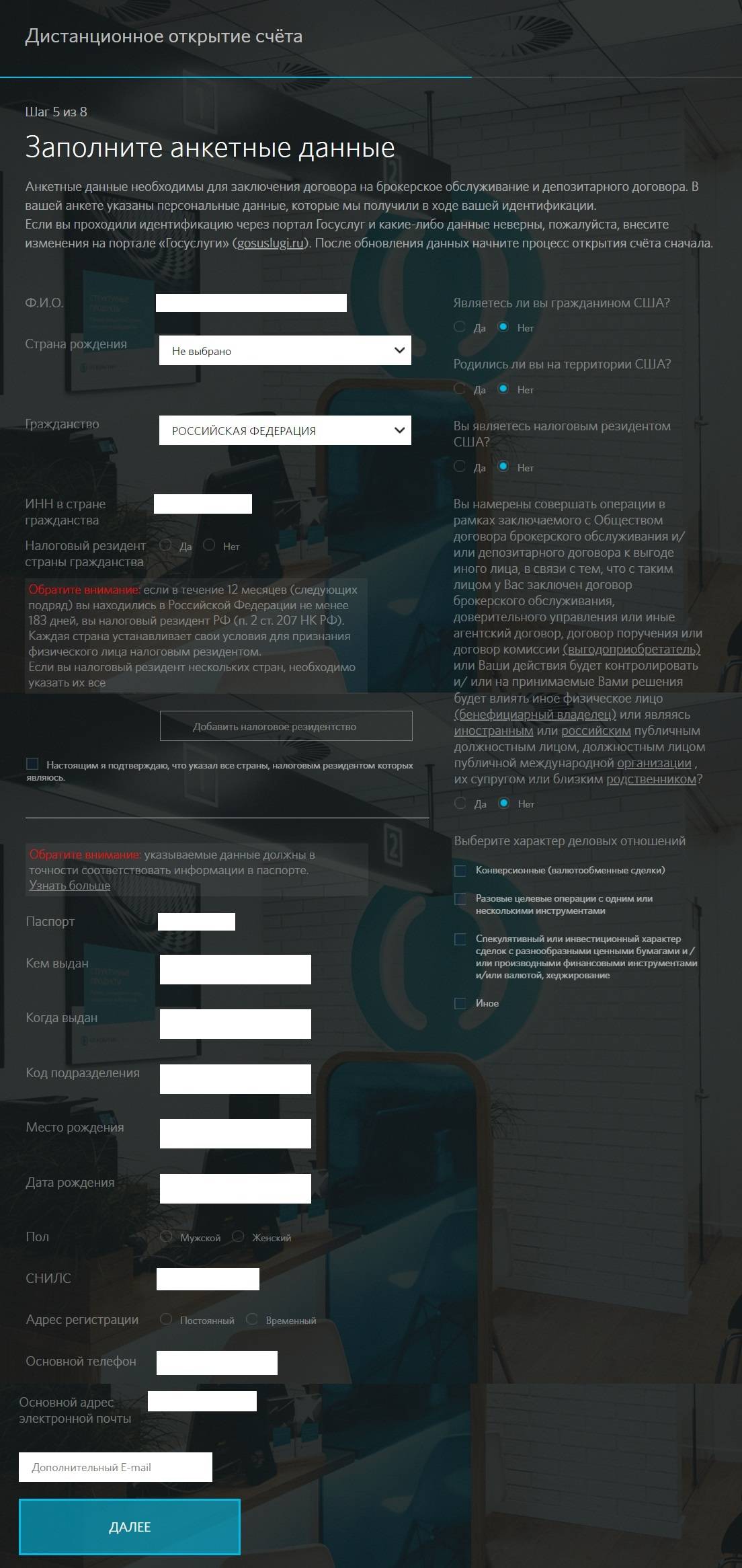 Этап пятый. Заполнение анкеты.
