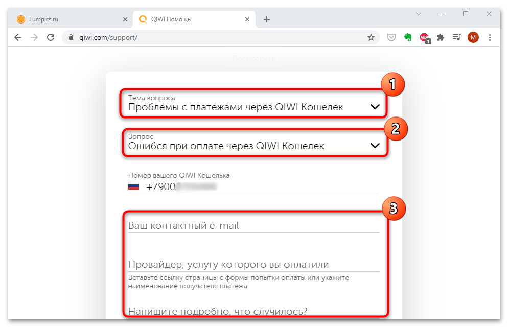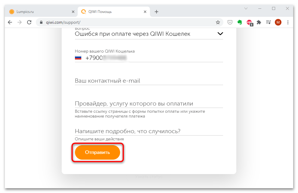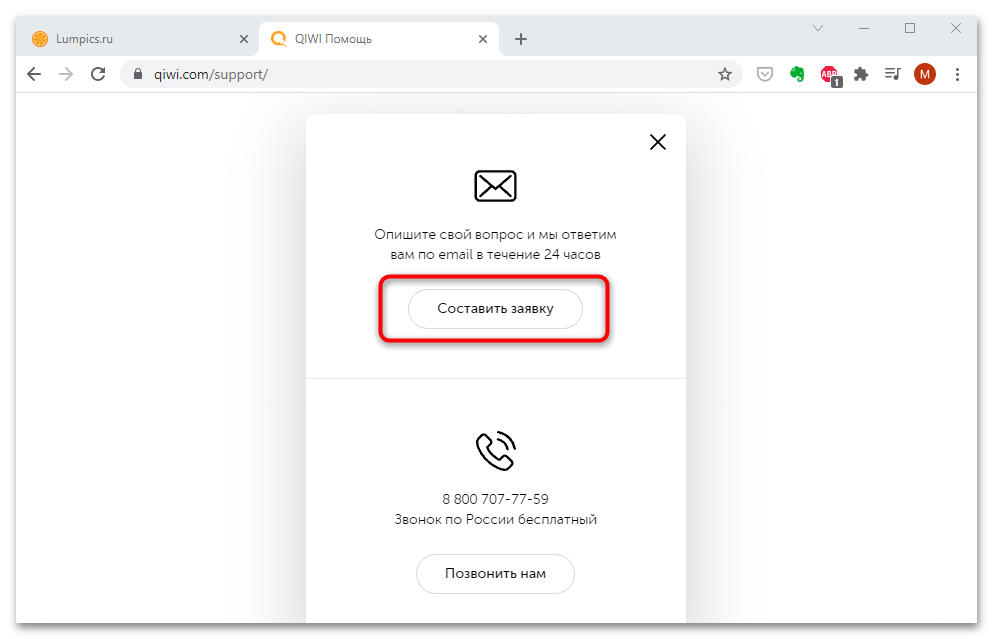 - Обратитесь в службу техподдержки Киви, заполнив форму, указанную выше.