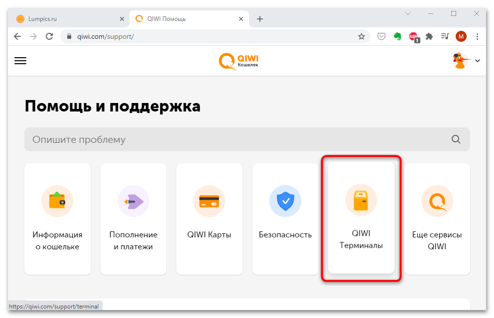 - В разделе техподдержки найдите пункт «Киви терминалы».