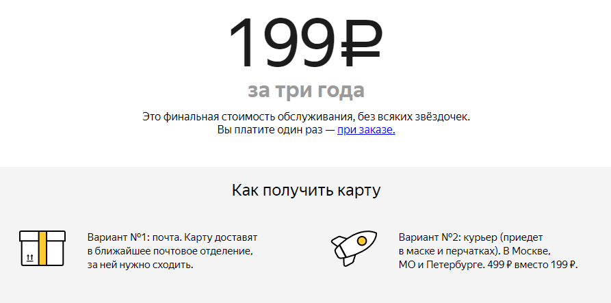 - Способы получения: 1) по почте, для получения вашей карточки вам следует выйти из дома и пройтись до ближайшего отделения; 2) доставка курьером, но тут будет дороже, стоимость доставки курьером: 499 рублей, вместо положенных 199 рублей.