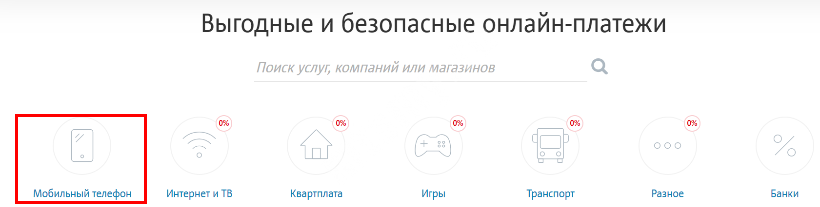 2. Также на страницу перевода денег можно попасть с официального сайта сервиса «Кошелёк» — https://payment.mts.ru. После авторизации потребуется немного пролистать стартовую страницу и в блоке «Онлайн-платежи» выбрать «Мобильный телефон».