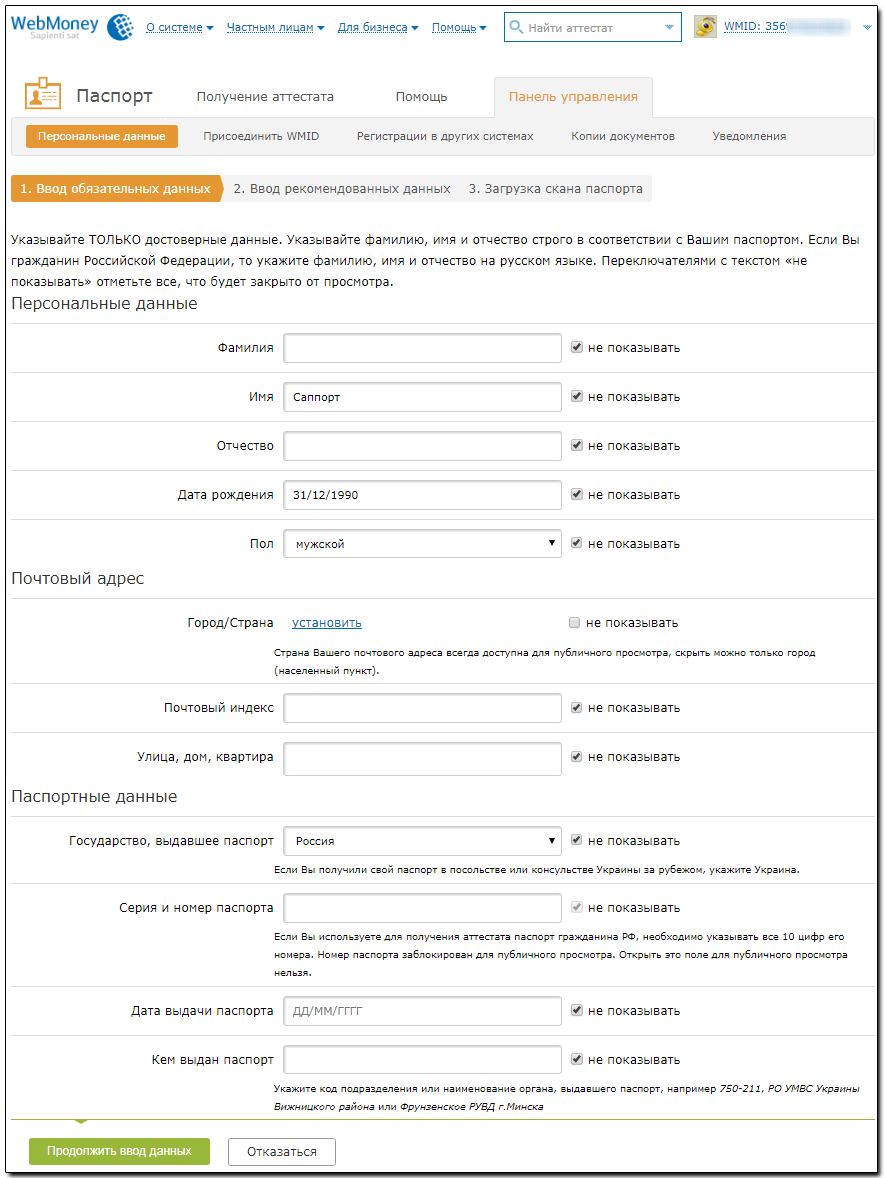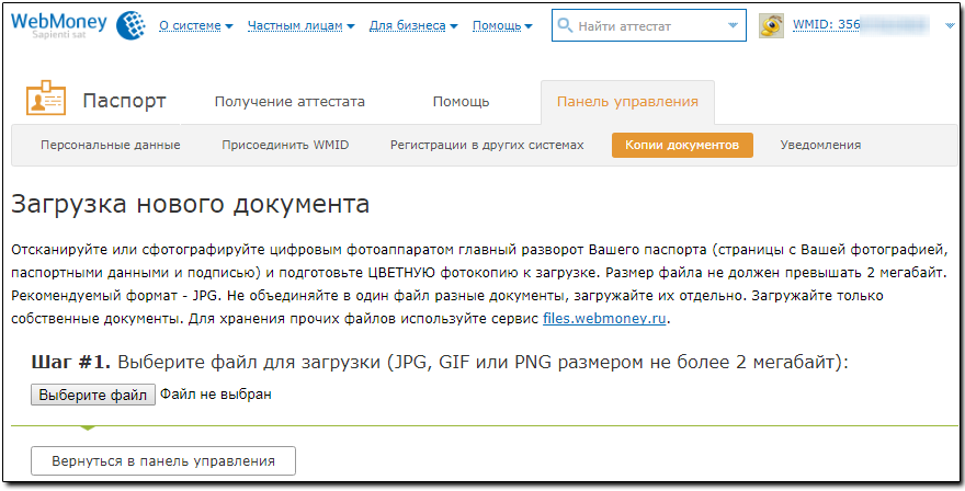 Для прохождения идентификации в WebMoney нужно выполнить следующие действия: