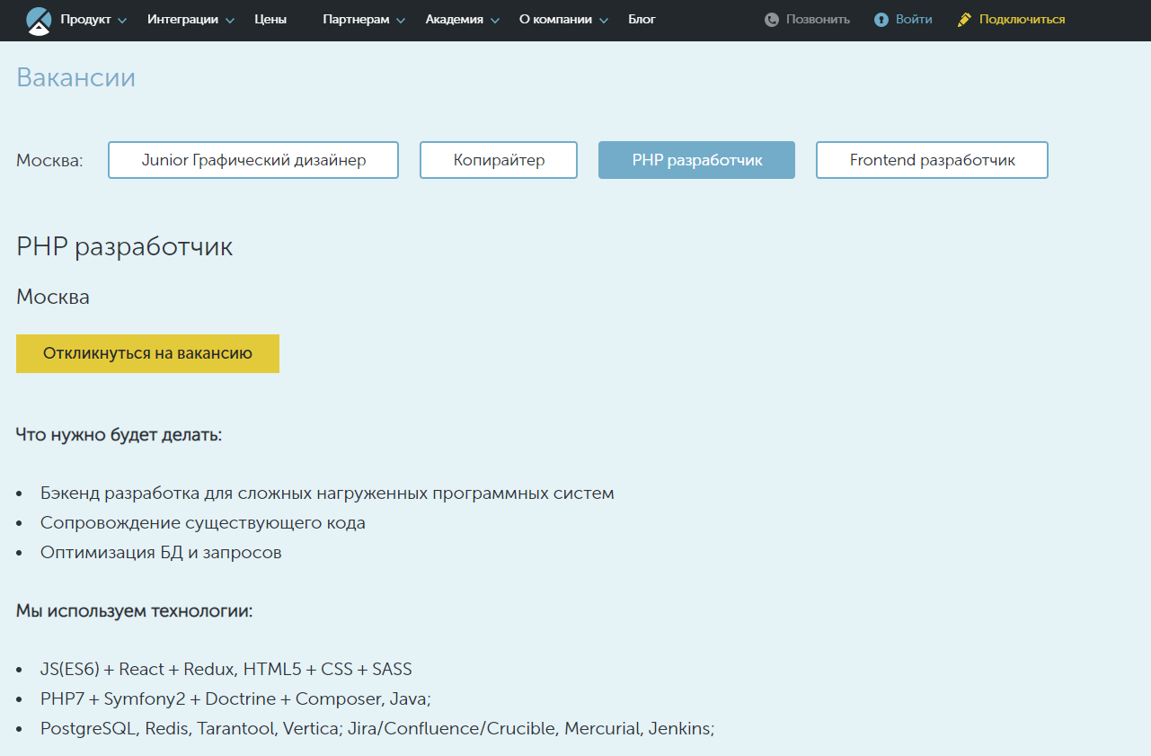При поиске технических специалистов лучше использовать противоположный подход и составлять описание вакансии сухим информативным языком.
