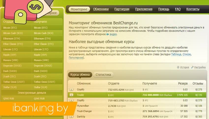 Переходим на сайт мониторинга электронных обменников (к примеру, Бест Чендж).