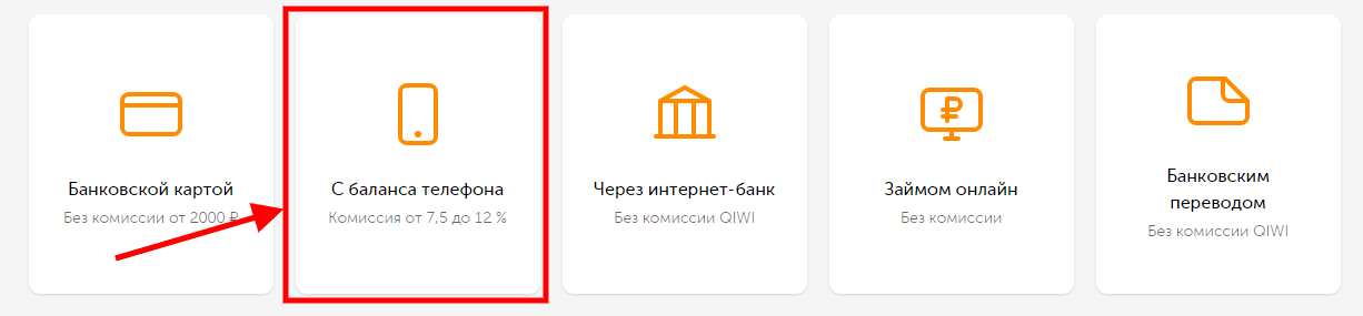 - С баланса телефона. При этом автоматически снимется комиссия от 1 до 15%.