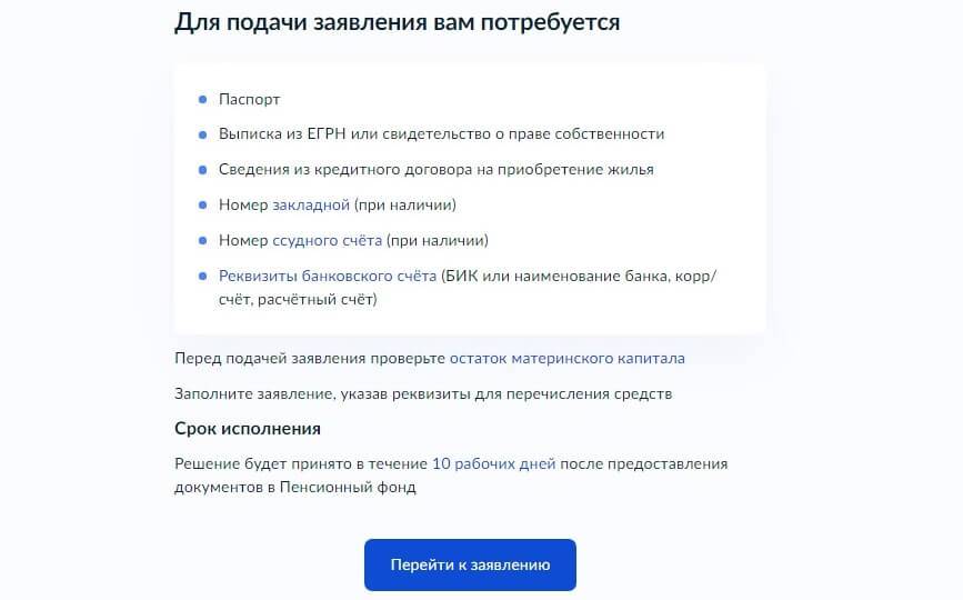 Заявление можно оформить на Госуслугах, в отделении или на сайте ПФР, в МФЦ. Также допускается это сделать в банке, если деньги направляются на первоначальный взнос, полное или частичное погашение долга по ипотеке.