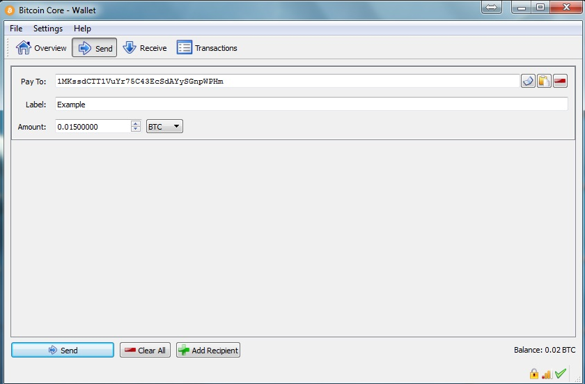 Для начала нужно просто запустить клиент, перейти к меню «Send» и ввести информацию о транзакции.