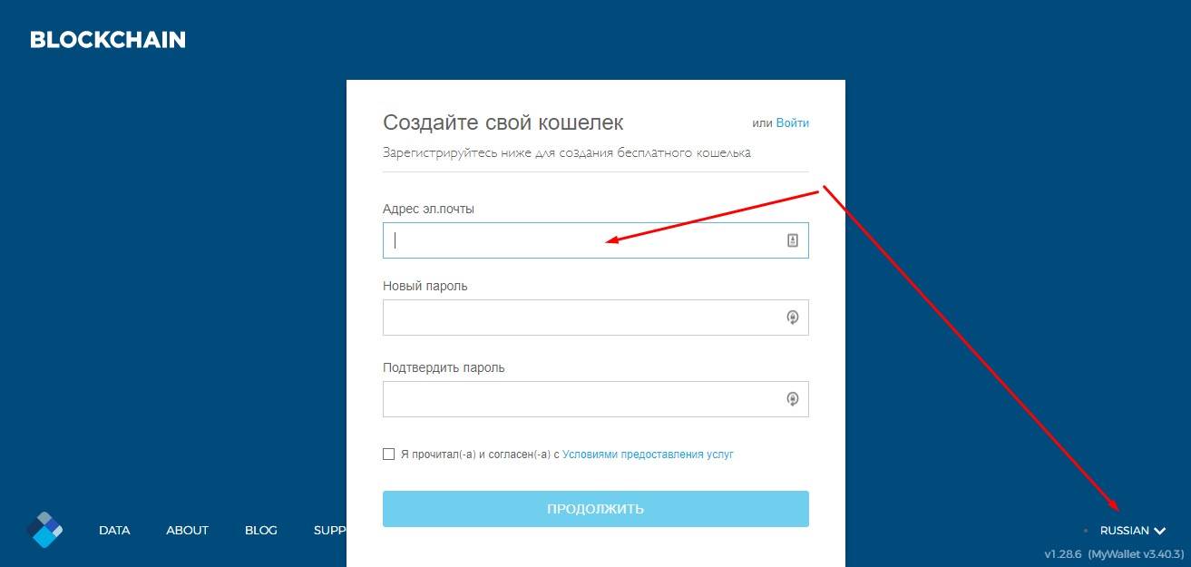 Давайте посмотрим, как создать биткоин кошелек, взяв для примера ресурс blockchain.info/ru/. Его мы выбрали, потому что здесь можно зарегистрировать биткоин кошелек на русском языке, потому что он работает уже несколько лет и потому что здесь один из самых простых форматов регистрации. Вопрос безопасности онлайн-кошельков на этом сервисе с некоторых пор стал подниматься всё чаще, но в этом смысле вопрос доверия к владельцам системы и защищённости системы стоит не более остро, чем для других ресурсов с высокой репутацией, предоставляющих услуги онлайн регистрации кошельков биткоинов.