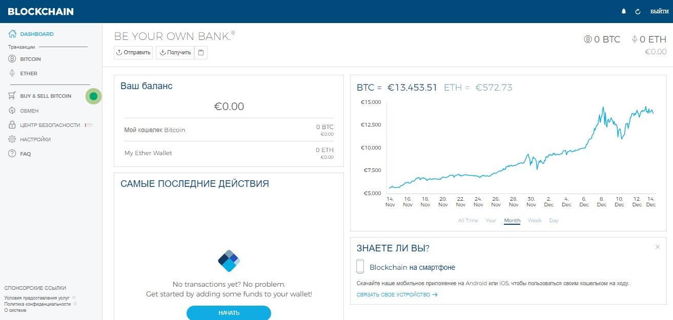 В самом же сервисе следует сразу озаботиться вопросами безопасности. С левой стороны располагается меню с пунктом «Настройки». Выбрав подпункт «Безопасность», необходимо получить и записать фразу (набор слов), которая понадобится для восстановления кошелька и решения технических вопросов со службой поддержки