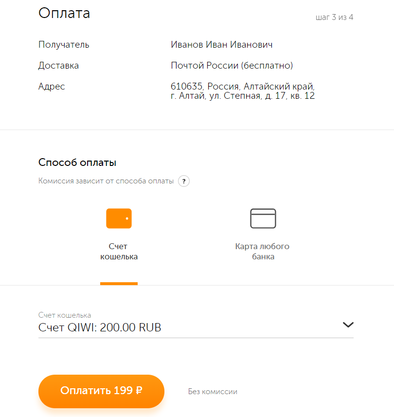 После успешного формирования заявки со счета кошелька будет списана стоимость выпуска финансового инструмента согласно действующим тарифам. В случае недостаточности средств нужно пополнить баланс счета. Только после этого сотрудники Киви банка примут заявку в работу.