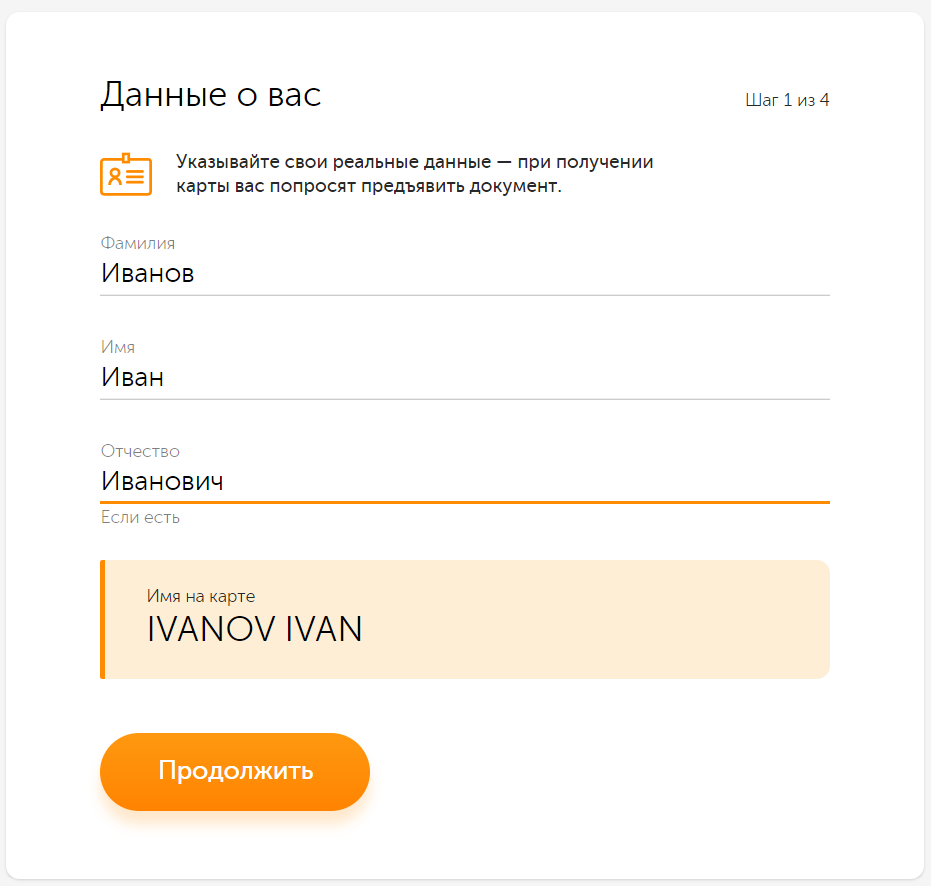 Эта информация будет нанесена на пластик, поэтому нужно обратить особое внимание на правильность написания данных
