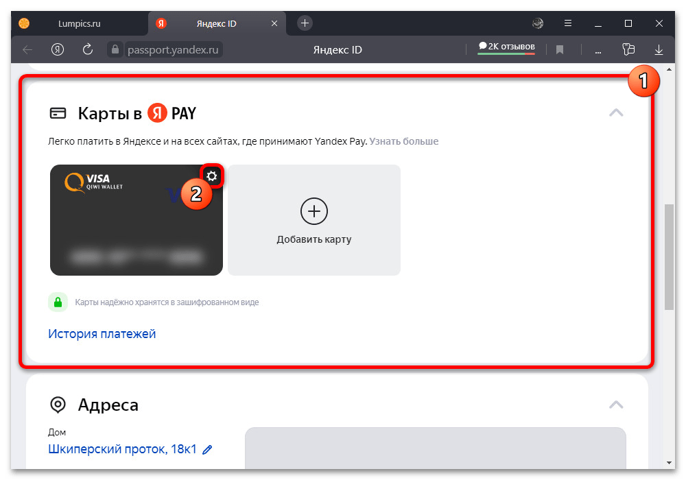 Действие 2. Перейти во вкладку «Банковские карты».