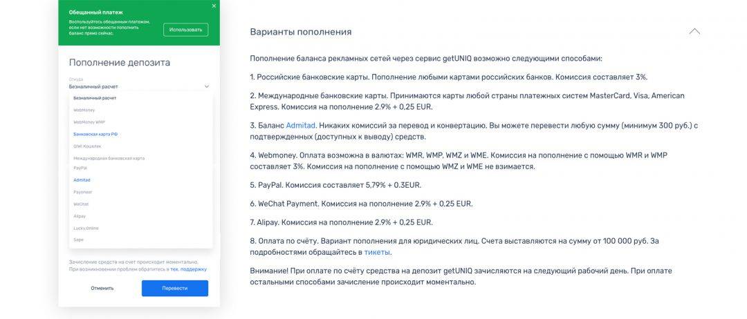 Популярные способы пополнения