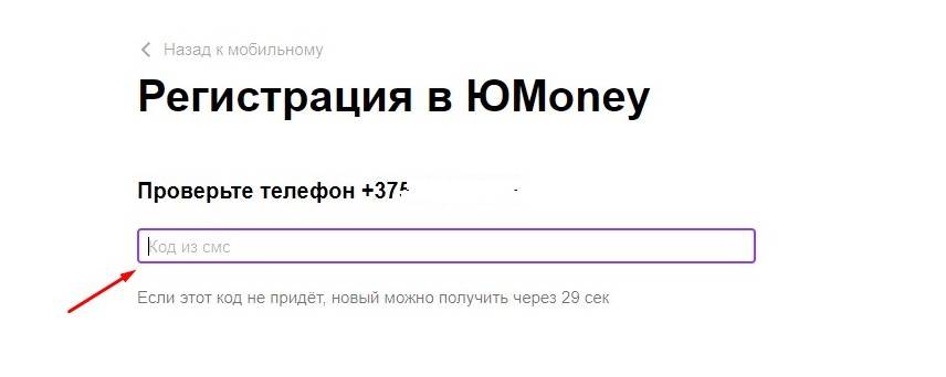 4. На указанный номер придет код. Введите его в поле ниже.