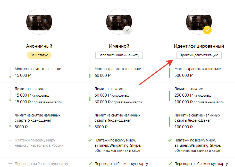 Идентифицированный кошелек — последний в действующей ротации статусов ЯД. Получить его могут граждане РФ, имеющие в распоряжении общегражданский российский паспорт. По паспортам иностранных государств идентификация производится по отдельным правилам. Всего существует несколько вариантов для прохождения идентификации: