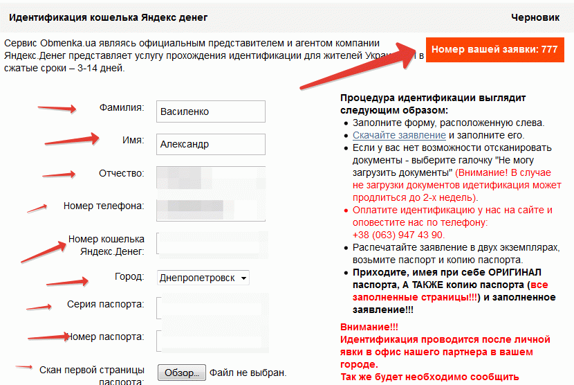 . Необходимо с соответствующей страницы, его необходимо заполнить и распечатать. После берете свой паспорт и подписанное вами заявление на идентификацию, отправляетесь в офис по одному из адресов: в Москве, Санкт-Петербурге и Нижнем Новгороде – в офис Яндекс.Денег, в Новосибирске и Екатеринбурге – в офис Яндекса.