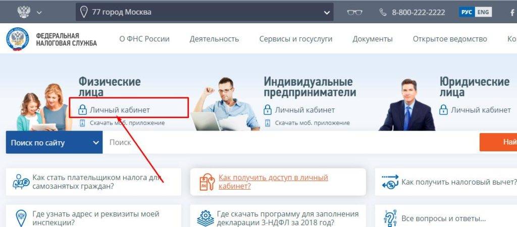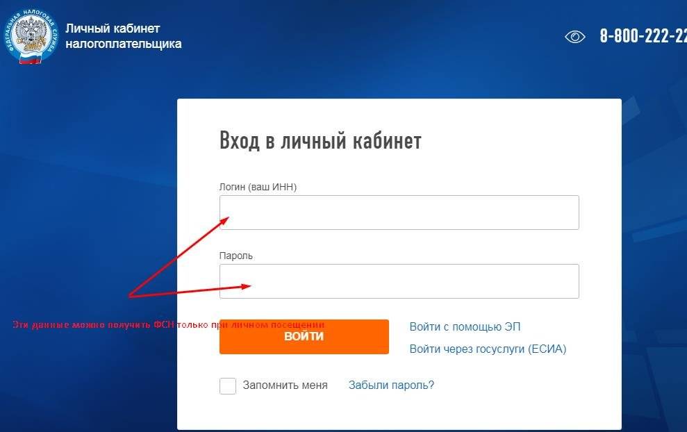 - Зарегистрироваться на сайте nalog.ru, получив при этом в налоговой пароль для входа в личный кабинет базы.
