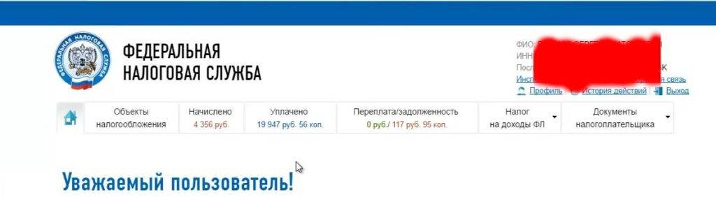 После идентификации, откроется информация с информацией по налогам. Если авторизация проводиться в первые, данные по налогам будут доступны только через 3 дня.