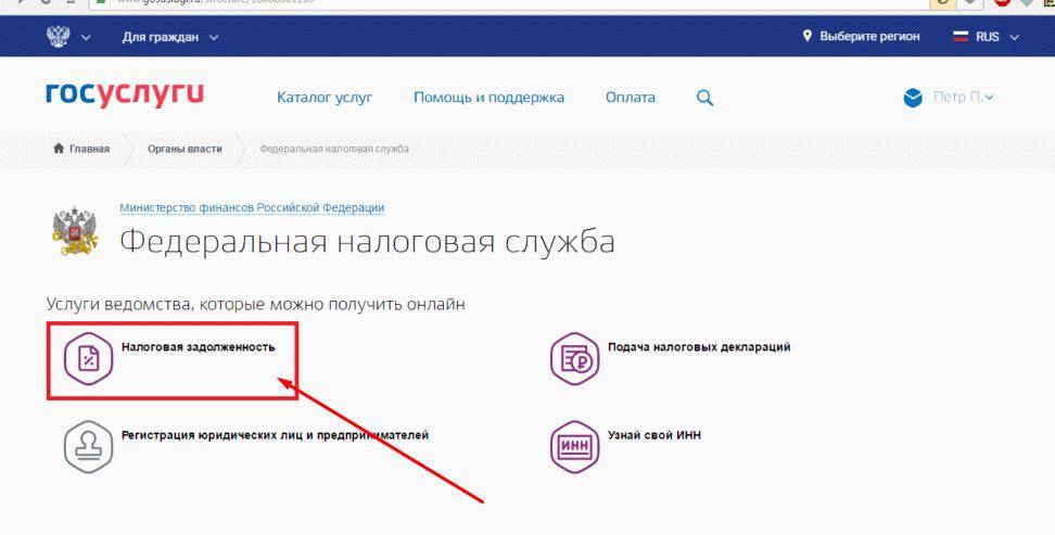 - Госуслуги. Начиная с 2016 г., россияне предпочитают получать уведомления от налоговой через этот сервис. Чтобы проверить наличие долгов, нужно: