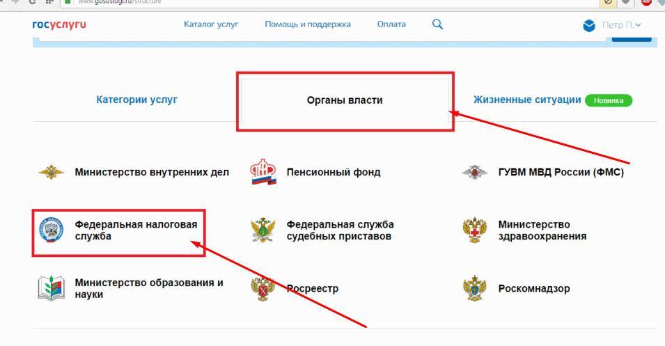 В новом окошке выбираем две закладки по очереди – «Органы власти» и «Федеральная налоговая служба».