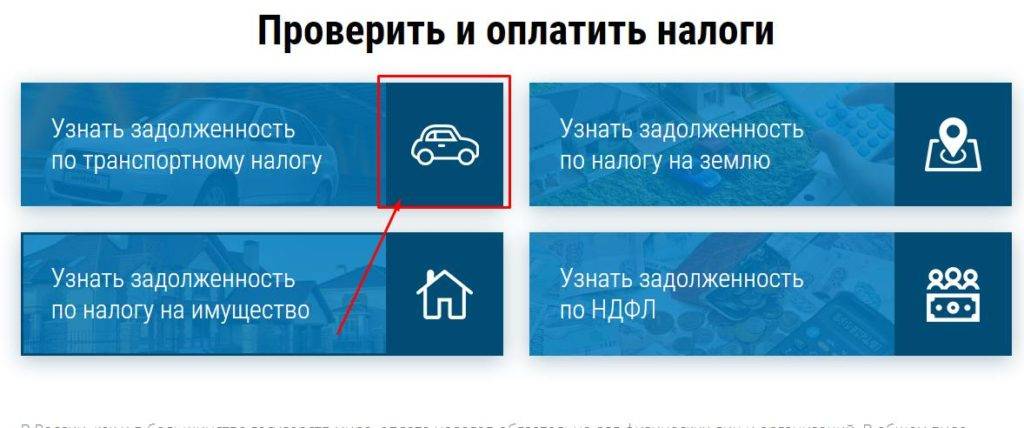 Откроется страничка, на которой можно будет проверить не только сумму задолженности по транспортному налогу, но и сумму подоходного налога и прочих платежей. Ничего выбирать не нужно.