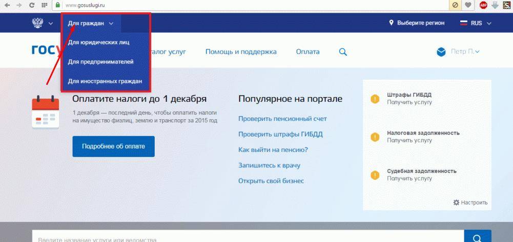 Возможен вариант, что система не будет пропускать пользователя далее. Причина — не верная авторизация. То есть портал мог принять человека за иностранного гражданина или индивидуального предпринимателя. Для исправления ситуации нужно найти в верхней части экрана закладку «для граждан».