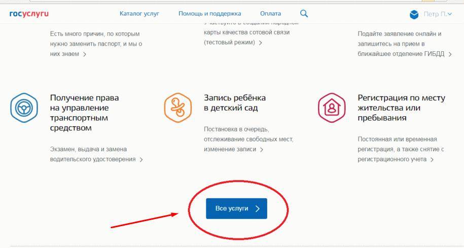 После заполнения указанных полей откроется доступ к каталогу услуг, в котором следует выбрать кнопку «все услуги».