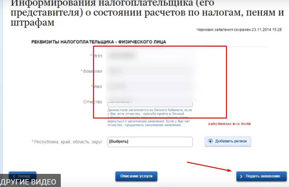 Затем выбираем регион и нажимаем кнопку «подать заявление». В открывшемся окошке появится вся необходимая информация.