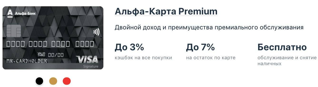 Альфа-карта выпускается в трех разновидностях. Для совершения покупок в интернете больше подходит премиальная карточка, которая обслуживается бесплатно. Оплачивая товары, вы будете получать возврат в размере 1-3% в зависимости от расходуемой в течение месяца суммы. А на остаточные финансы вы будете получать прибыль до 7% годовых.