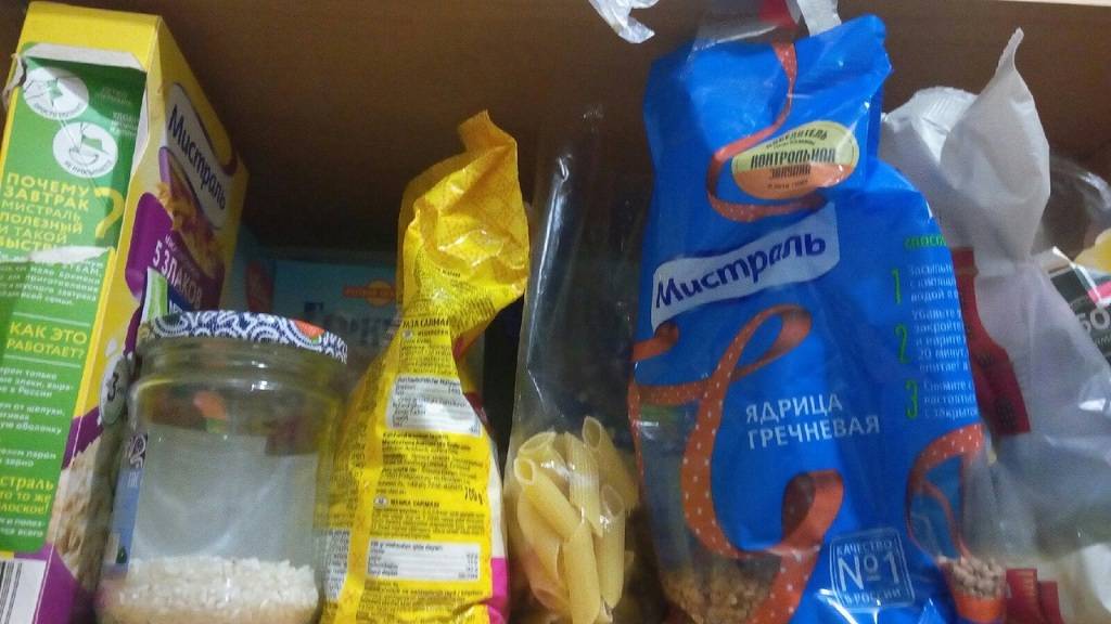 Я хожу за продуктами раз в неделю и отдаю предпочтение крупам, макаронным изделиям и овощам.