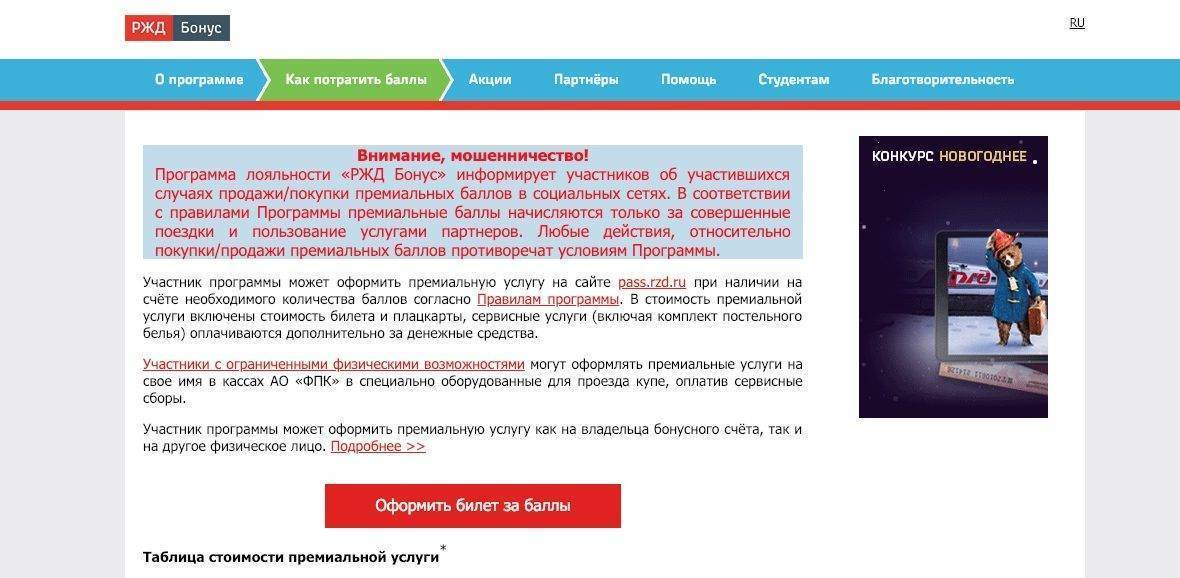 Самые выгодные билеты можно получить за баллы, которые накапливаются в программе «РЖД Бонус». Пассажир регистрируется в ней, ездит на экспрессах и поездах дальнего следования, параллельно получая баллы на премиальный билет. Последний можно взять на нижнюю полку купе в пиковый сезон. Правда, за оформление билета придётся всё-таки отдать реальные деньги — 140 рублей, которые не вернут, если вы решите его сдать.