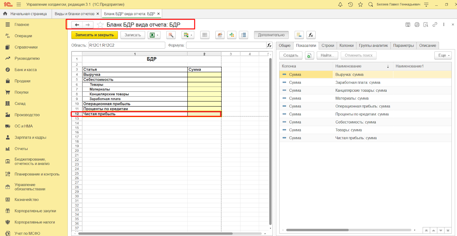 Чтобы спрогнозировать прибыль в 1С:Управление холдингом, можно использовать инструмент «Виды и бланки отчетности». Для этого потребуется настроить такие справочники: