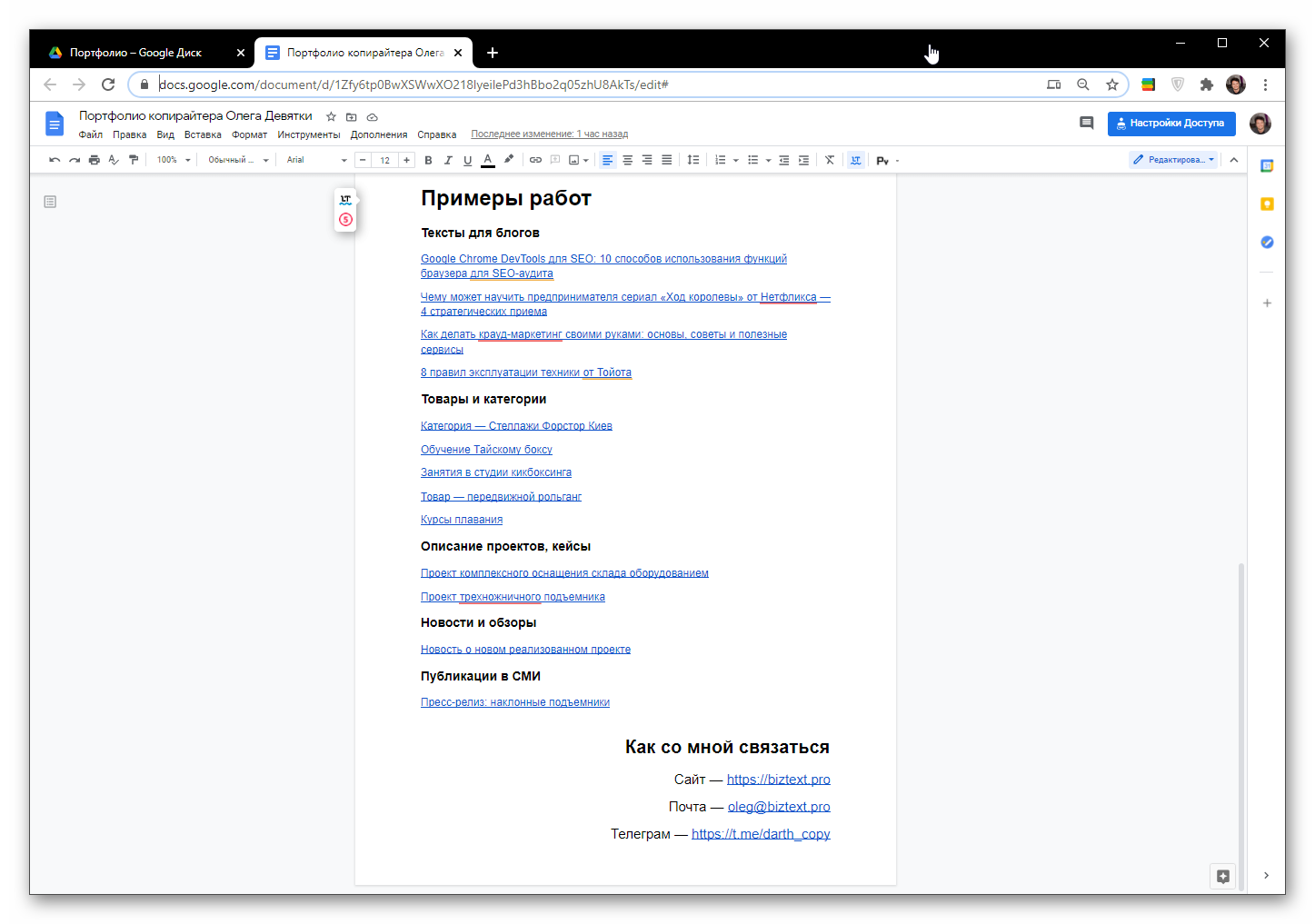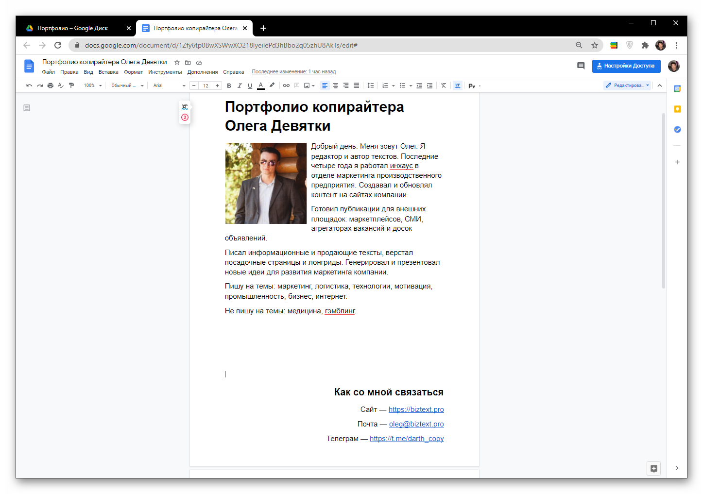 Портфолио копирайтера и презентабельный мини-сайт за 15 минут